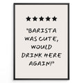 Poster with five stars and the quote “Barista was cute, would drink here again!”