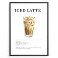 Load image into Gallery viewer, Iced latte recipe poster with a glass of iced espresso and milk.
