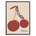 Modern French-style poster with two large red cherries and the text “Mon Chéri.”