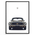 Ford Mustang 1964 plakat | Klassisk sort Mustang forfra med ikonisk logo | Vintage bilplakat til stuen eller garagen | Retro bilkunst fra Plakaty.dk