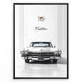 Load image into Gallery viewer, Front-view illustration of a classic Cadillac car set in an elegant interior with Cadillac emblem above.