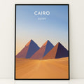 Cairo Vintage Travel Plakat | Vintage Travel Poster | Denne plakat viser de ikoniske Giza-pyramider i Cairo, Egypten, mod en gradient himmel og et ørkenlandskab.