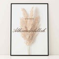Bring a sense of calm and gratitude to your home with our beautiful "End With Alhamdulillah" poster. With elegant shades of white and beige, and a delicate pampas grass design, this poster fits perfectly into any modern interior. It is not only an aesthetic addition, but also a reminder to end each day with gratitude. The poster can be purchased individually or combined with others for a harmonious expression. Perfect for any room that needs a stylish and meaningful touch.