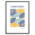 Paris Bloom Plakat | Flower Market Poster | Blå blomster med gule centre og grønne blade