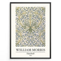 Framed William Morris Harebell 1875 art print plakat with intricate green and blue floral pattern on a light background.