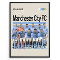 Load image into Gallery viewer, Manchester City FC holdfoto plakat | Spillerne står i lyseblå hjemmebanetrøjer 2024-2025 med intense udtryk og holdskjold.