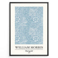 Framed William Morris Marigold 1875 art print plakat with detailed blue and white floral and leaf design.