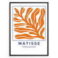 Coral Cut-Outs Plakat | Matisse Poster | Blå ramme med orange abstrakt bladmotiv