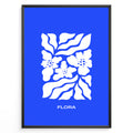 Flora Indigo Plakat | Matisse Poster | Blå baggrund med hvide blomster og elegant typografi
