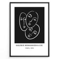 Galerie Berggruen Plakat | Matisse Poster | Tre abstrakte ansigter tegnet med hvide linjer på sort baggrund