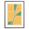 Golden Blooms Plakat | Matisse Poster | Abstrakte gule blomster med orange centre og grønne blade på beige baggrund
