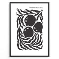 Load image into Gallery viewer, Papiers Découpés Plakat | Matisse Poster | Tre store cirkulære former omgivet af bølgende linjer i sort-hvid minimalistisk design