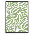 Verdant Flow Plakat | Matisse Poster | Dynamisk mønster af grønne stiliserede blade på hvid baggrund