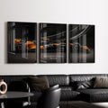 Load image into Gallery viewer, Triptych wall art plakat of the McLaren F1 Team MCL38 Formula 1 car displayed in a stylish living room with black leather furniture.