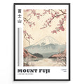 Load image into Gallery viewer, Japanske plakater | Vintage-style illustration of Mount Fuji with cherry blossoms falling over a peaceful lake and distant forest, featuring the text “Tokyo 1988.”