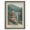 Load image into Gallery viewer, Japanske plakater | Poster of Seiganto-ji Temple with Nachi Falls in the background, surrounded by lush green mountains and traditional Japanese landscaping.