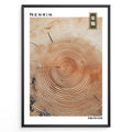 Japanske plakater | Japanese minimalist poster showing detailed concentric tree rings, representing the passage of time and growth.