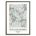 Framed William Morris Seaweed 1866 art print plakat featuring intricate seaweed-inspired floral and leaf motifs in blue and green on a cream background.
