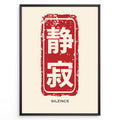 Japanske plakater | Silence Wall Art – Japanese Kanji Print in Red Ink Stamp Design