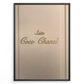 Fashion Plakat | Suite Coco Chanel Door Sign – Iconic Parisian Elegance Plakaty.dk | Beige door panel with elegant gold script reading “Suite Coco Chanel,” symbolizing luxury and Parisian elegance.