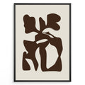 Load image into Gallery viewer, Framed abstract poster with bold brown organic shapes on a beige background in a minimalist modern style.