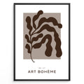 Framed “Art Bohème No.07” poster featuring abstract brown botanical shapes on a taupe background in a minimalist modern style.