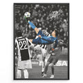 Cristiano Ronaldo fodbold plakat med legendarisk saksespark i blå Real Madrid trøje under Champions League kamp.