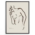 Framed “Fleur Sauvage No.19” poster with minimalist brown wildflower line art on a taupe background, from the Jardin Minimalist Collection.