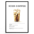 Load image into Gallery viewer, Iced coffee recipe poster with a tall glass of iced brewed coffee.