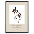 Framed “Les Pêches No.01” poster with minimalist brown line art of peaches and leaves on a branch, from the Le Jardin Fleuri Collection.