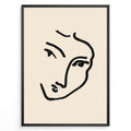 Load image into Gallery viewer, Minimal abstract face line art poster in black frame on beige background.