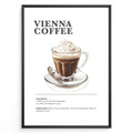 Load image into Gallery viewer, Illustration of a Vienna coffee in a glass cup topped with whipped cream on a saucer.